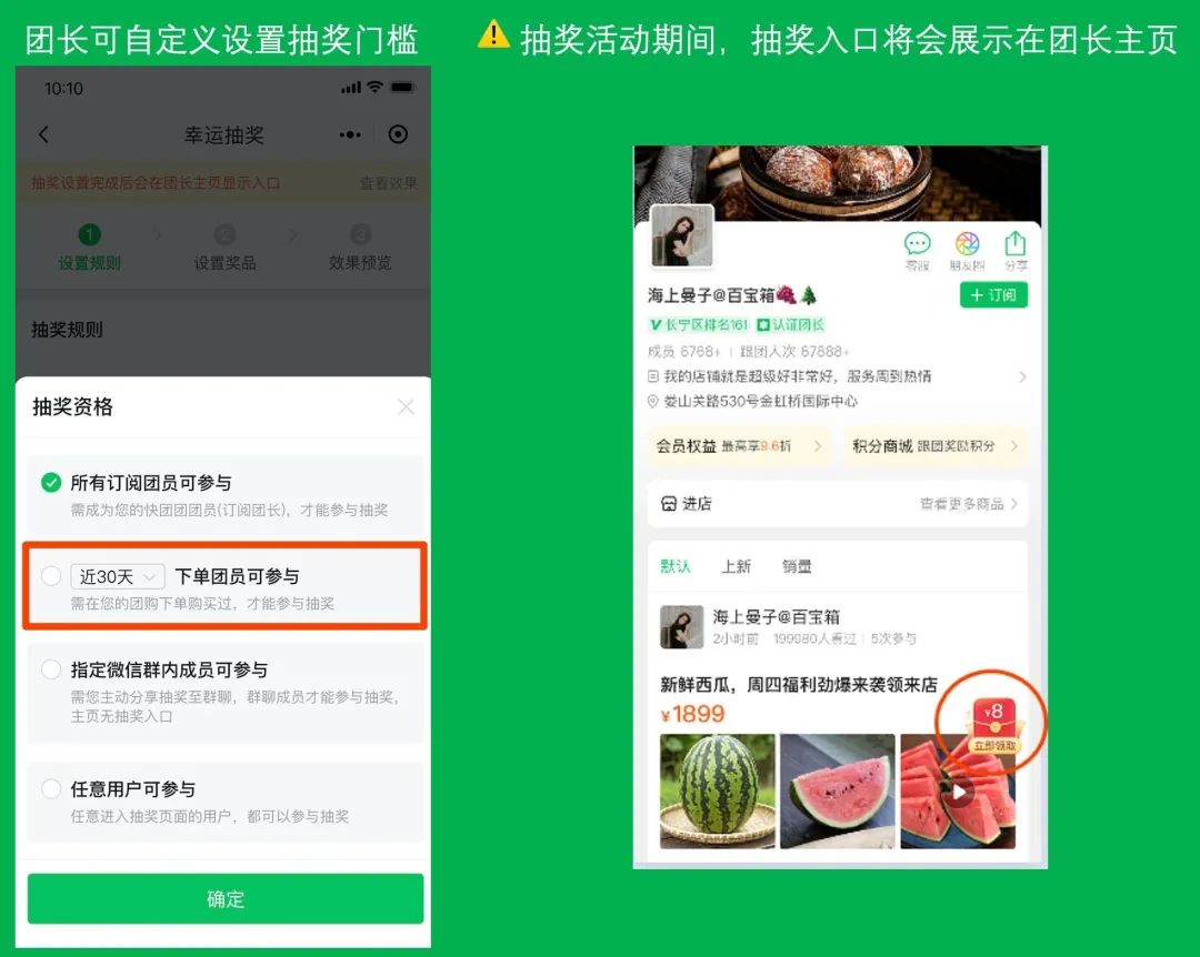 ⚠️ 抽奖活动期间,抽奖入口将会展示在团长主页