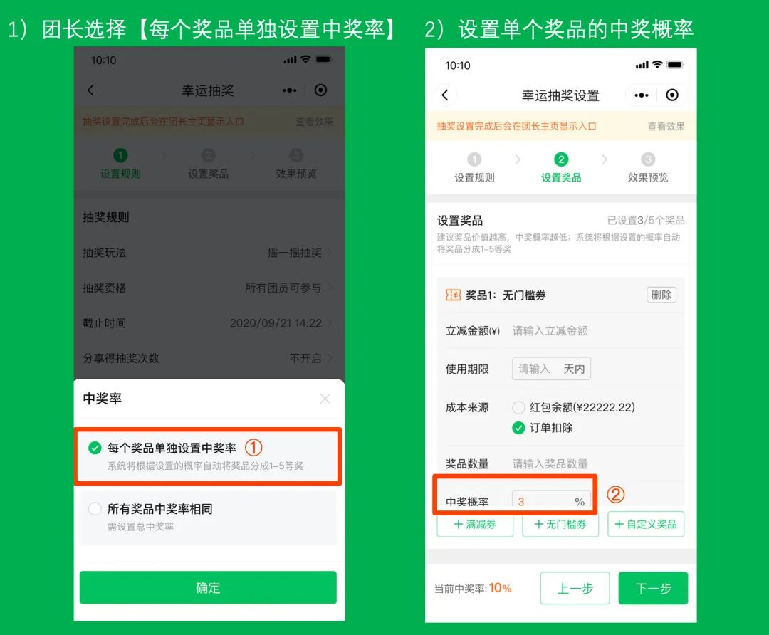 团长可针对每个奖品单独设置中奖概率, 增加奖品的吸引力。