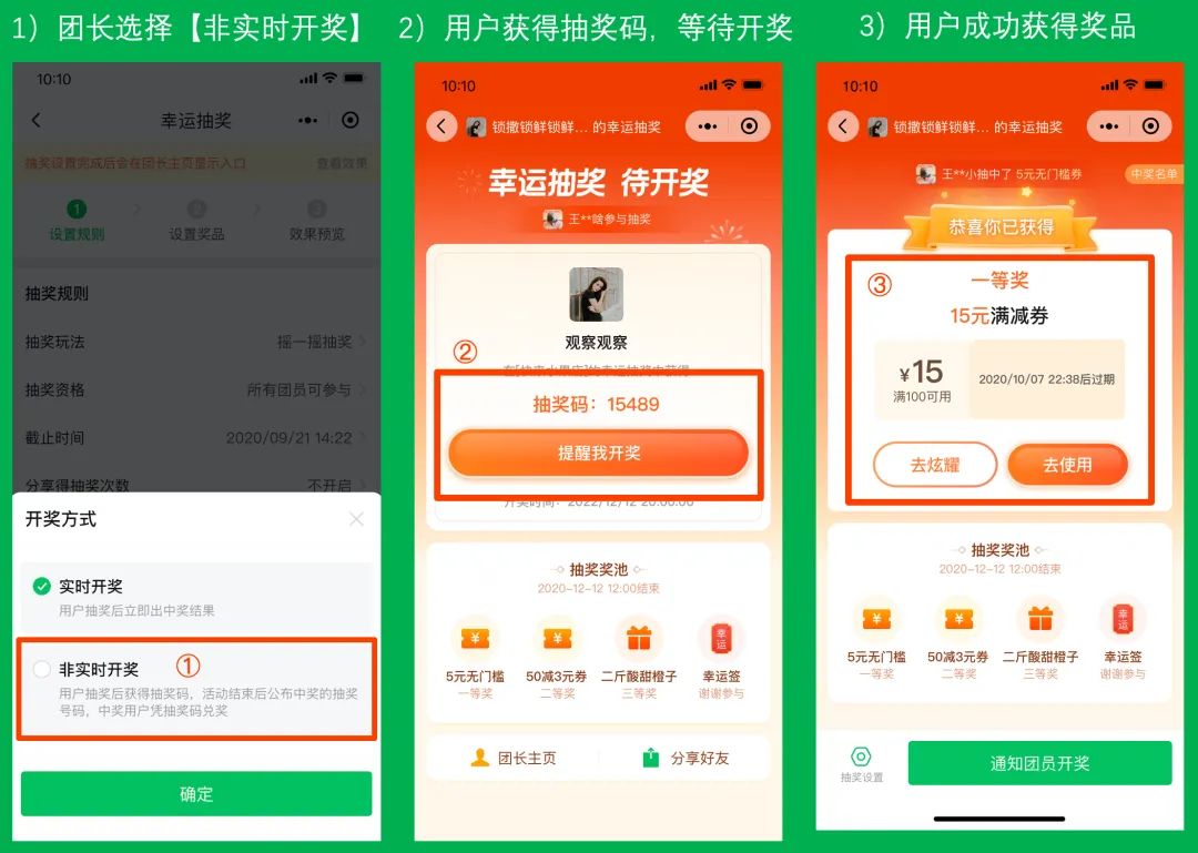 【非实时开奖】 可增加用户对于奖品的期待,以及集体参与感~