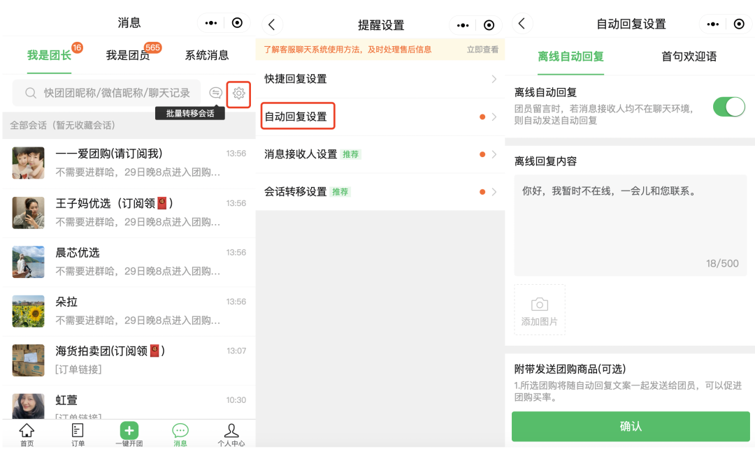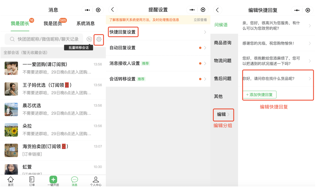 快团团【客服聊天系统】帮助团长------