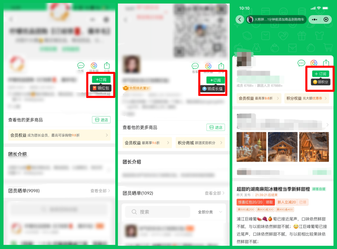 订阅按钮的提示样式(奖励),新增了2种,可有效吸引团员注意力,提高团长的订阅率。\