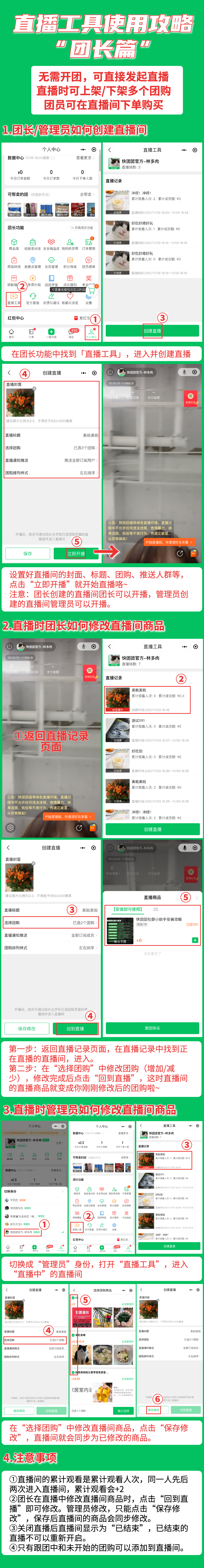 先前的【直播团购】功能无法为多团带动销量,快团团新上线了让 团长无需另外开团,一开直播可挂多个团购 的 ------