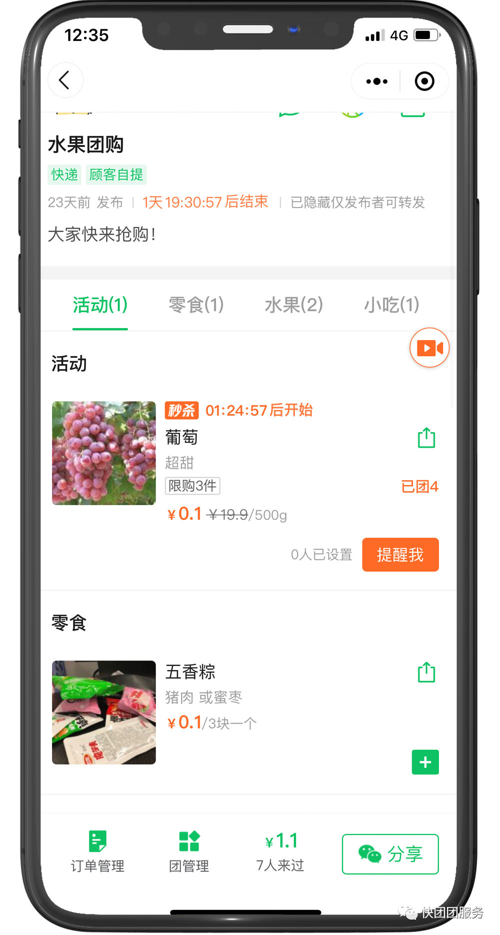 团购商品一多,难免眼花缭乱,活动款、上新款、秒杀款、零食、水果......清晰的分类能 帮 助顾客选购不同类型的产品,快速找到自己想要的商品。