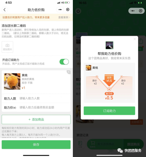 团长创建新团时【设置助力低价购】,可以: