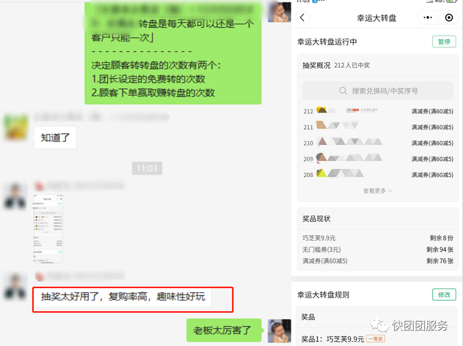 我们在内测阶段,幸运大转盘收获了团长大大们的一致好评!
