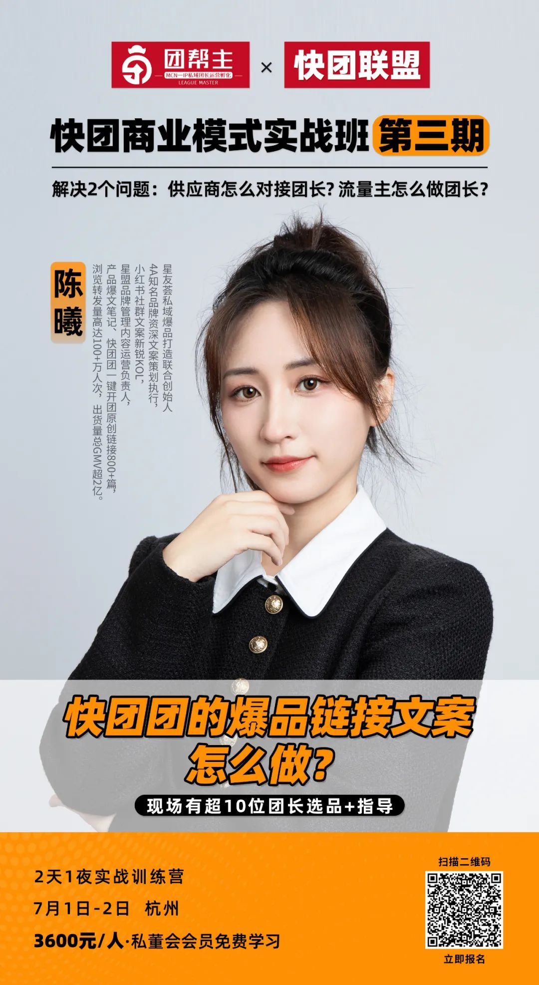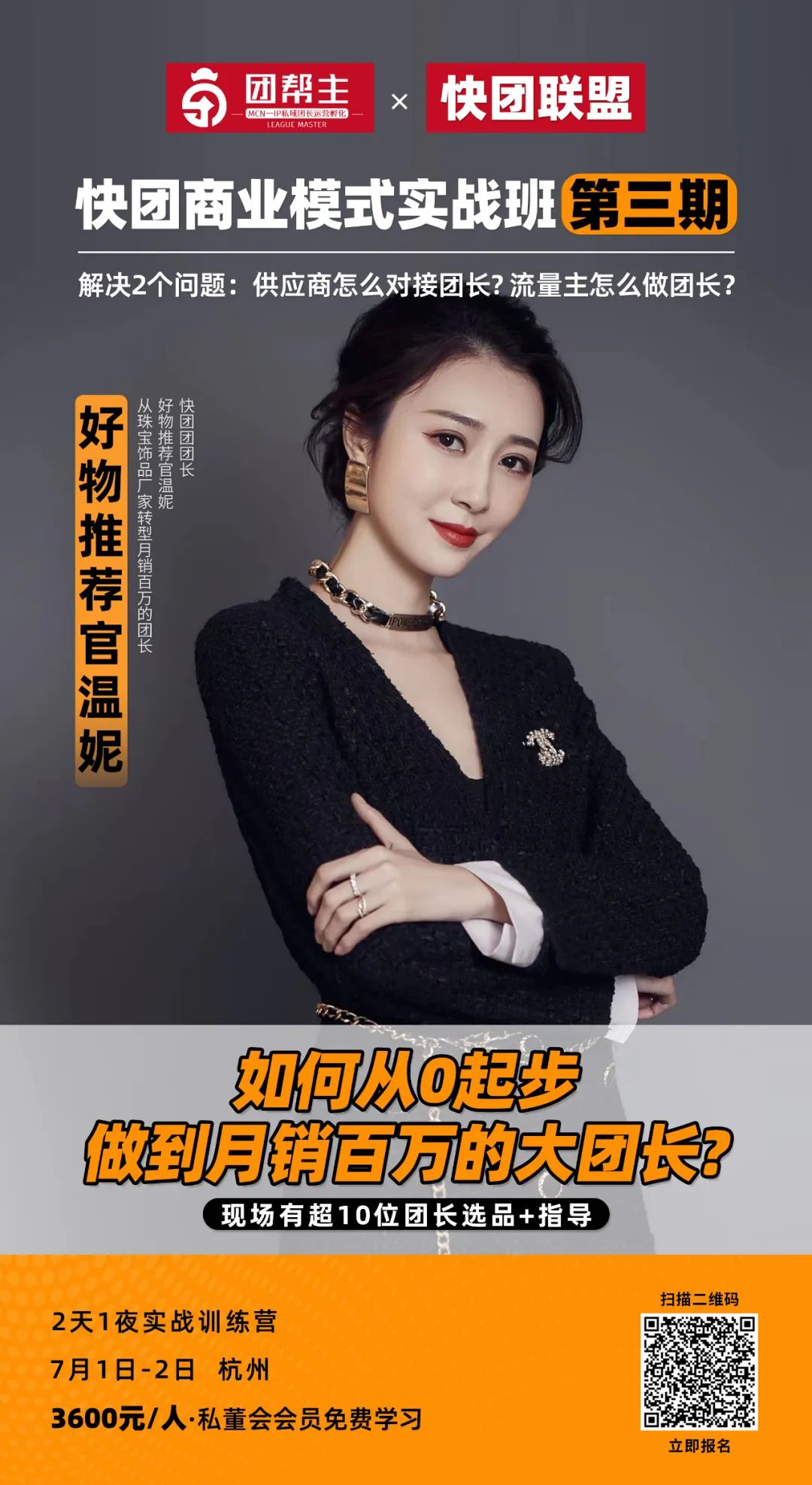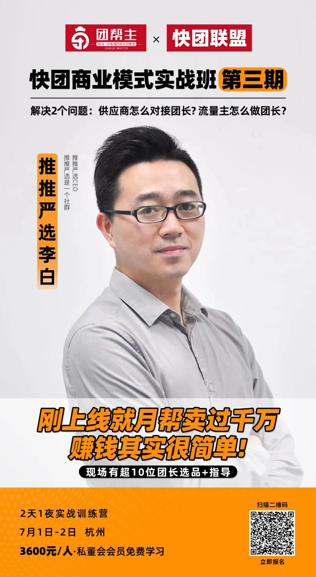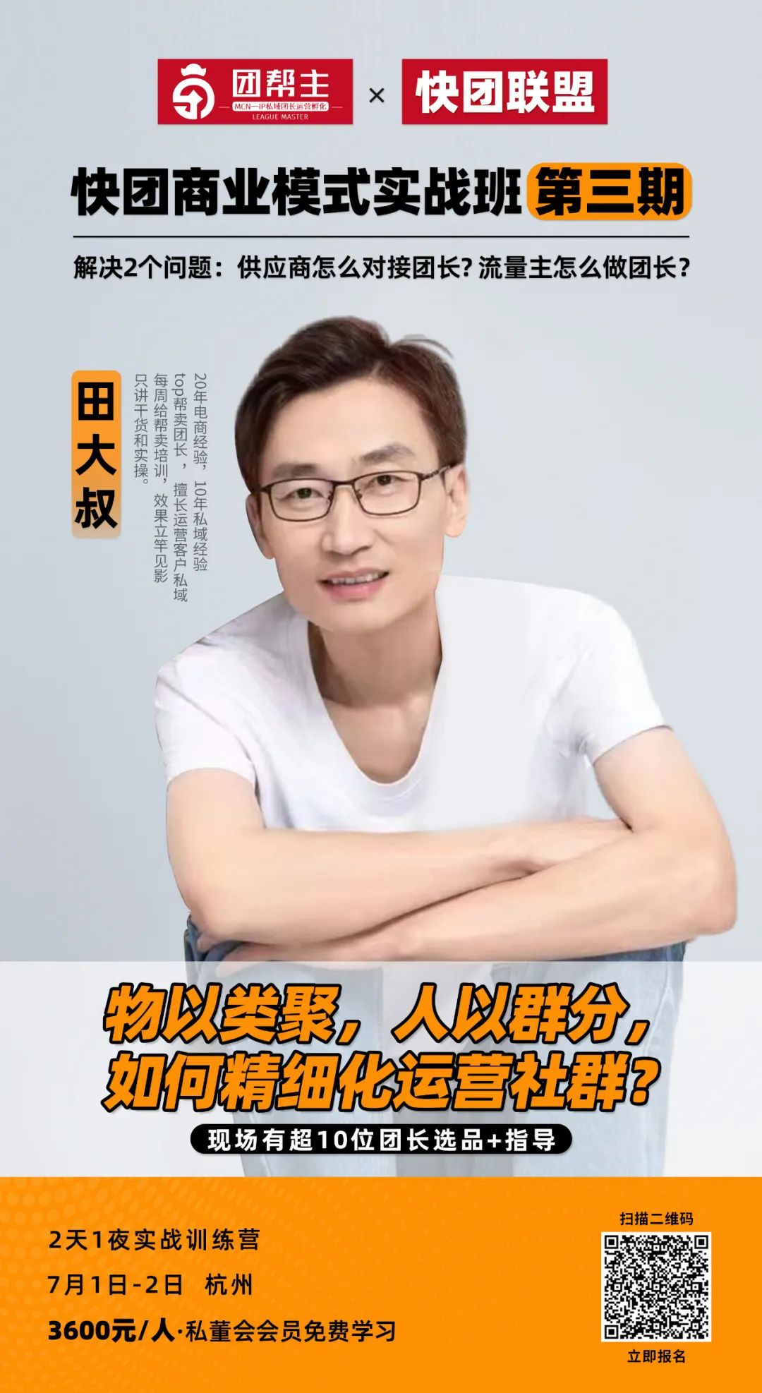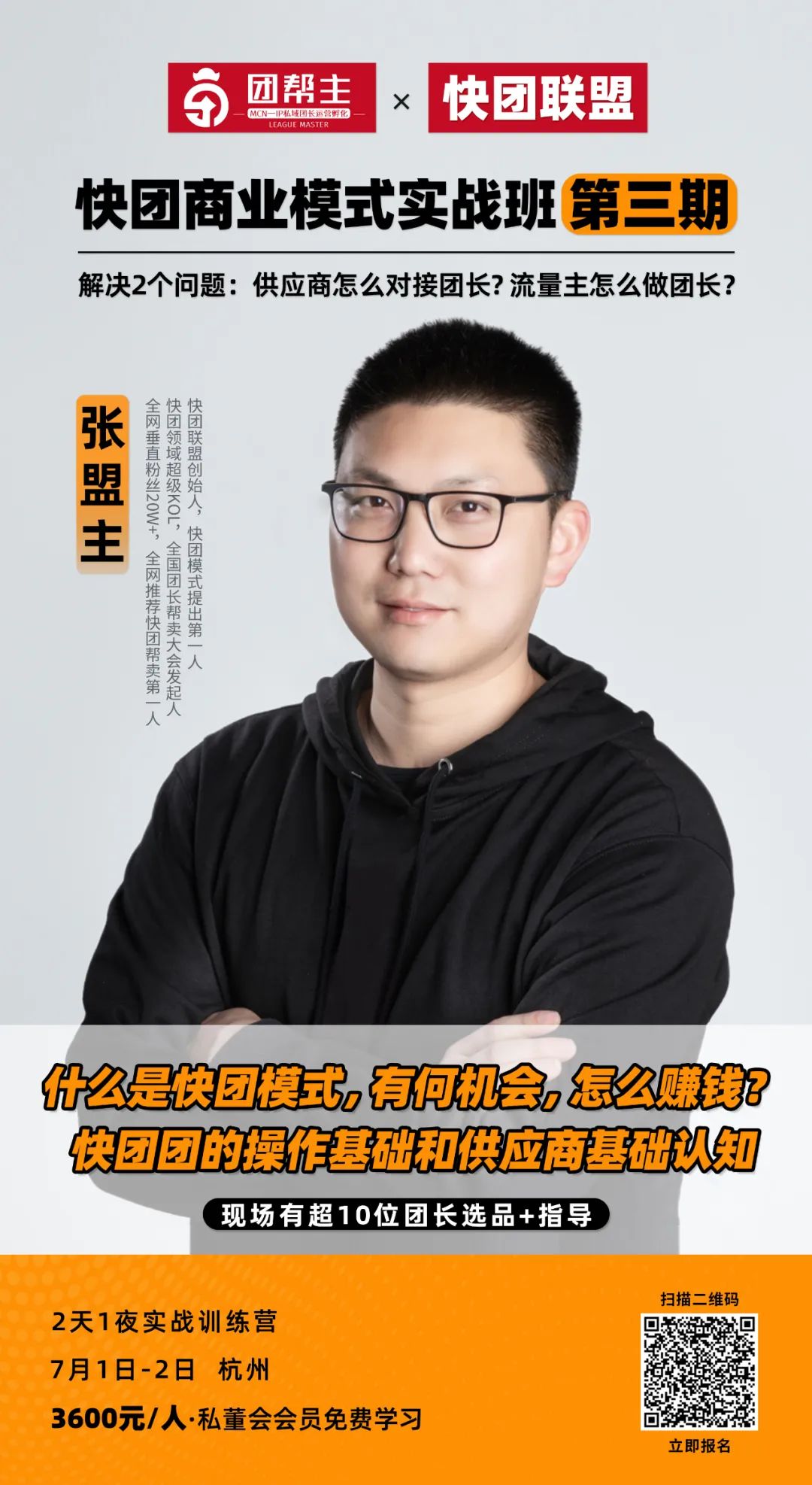 关注抖音【快团张盟主】,每天晚上有直播;公众号【快团联盟】,更多干货,实时更新!