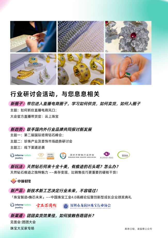 足量干货的行业研讨会活动是历来都是中国珠宝季的看点。今年我们将继续邀请分量大咖分享和共同探讨与您息息相关的行业信息!