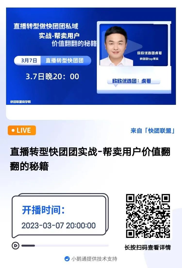 03/06 直播课:欣欣优选,直播转型快团团实战-帮卖用户价值翻翻的秘籍!