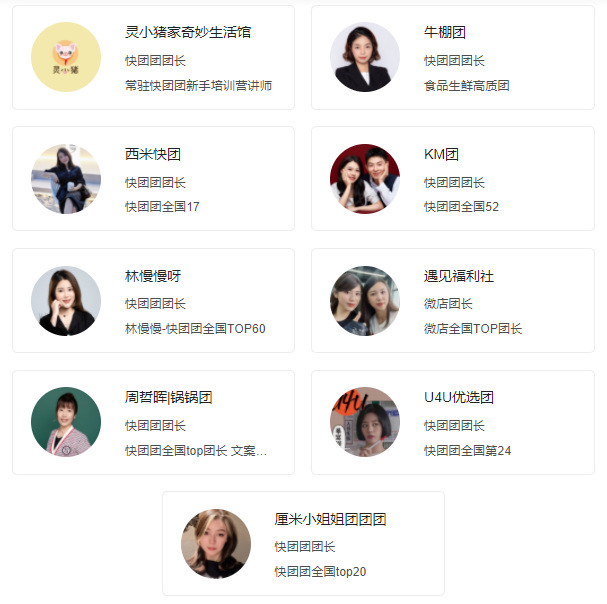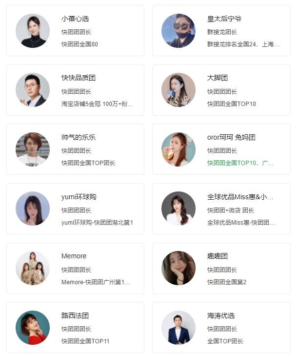 1)精准对接:覆盖快团团、群接龙、微店等全国TOP团长;