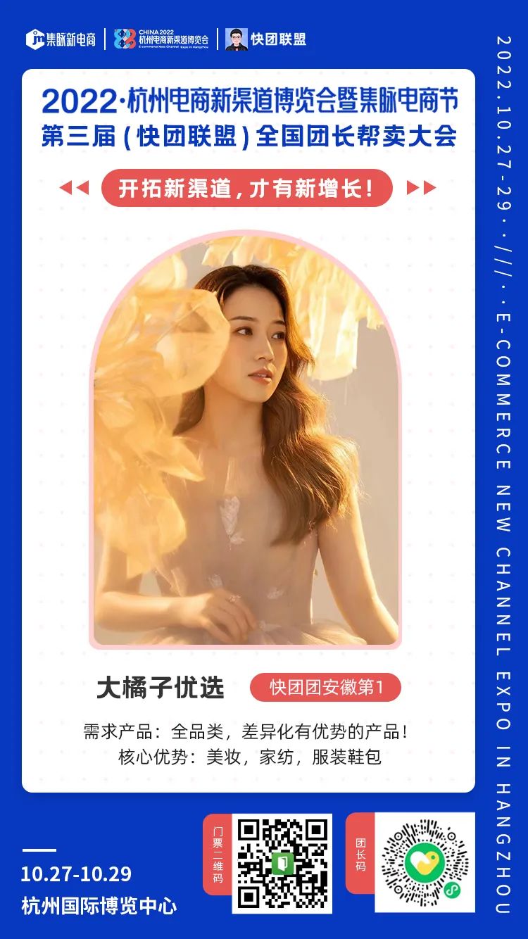2022/09/02 2022杭州电商新渠道博览会暨集脉电商节,第三届(快团联盟)全国团长帮卖大会,开始邀请和报名!