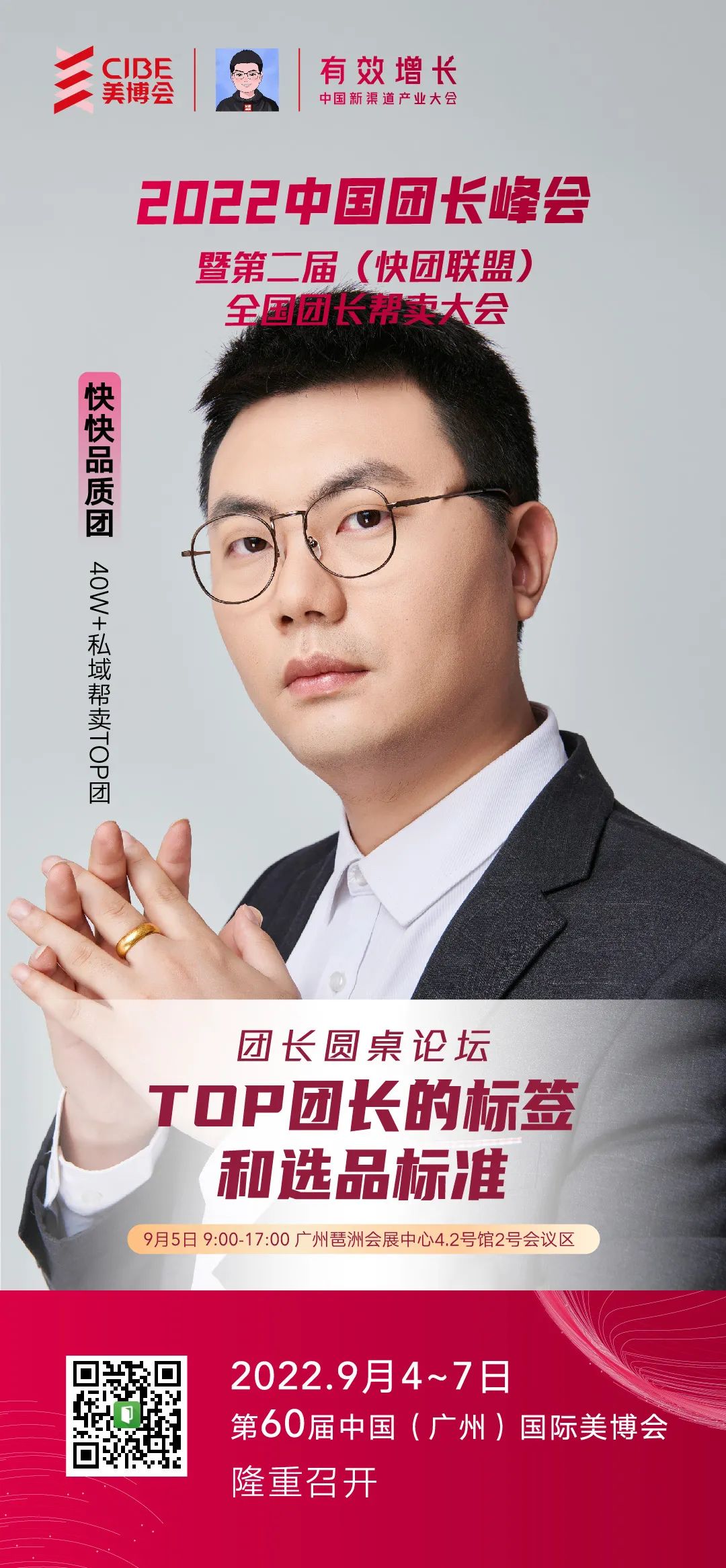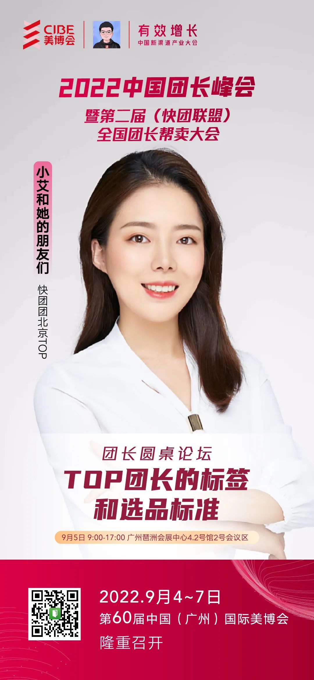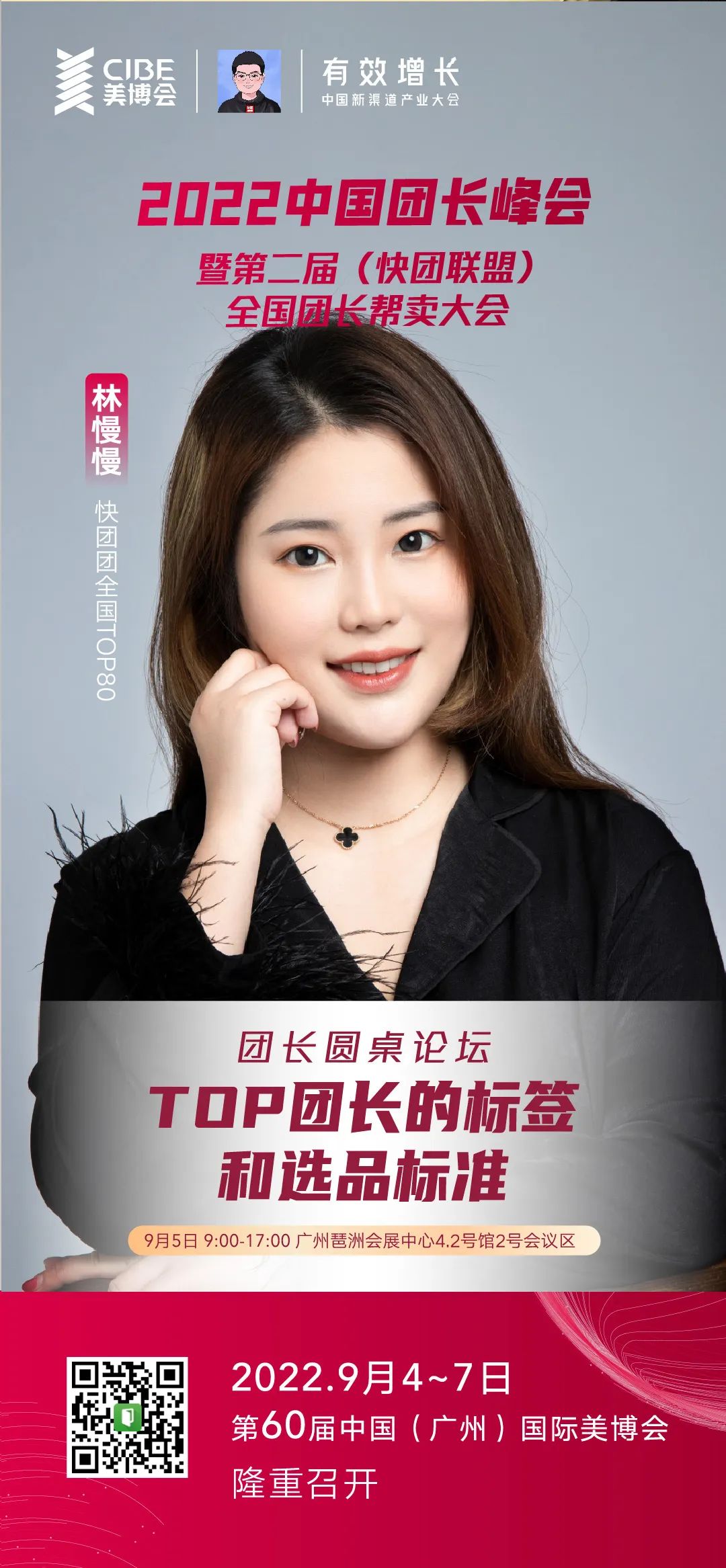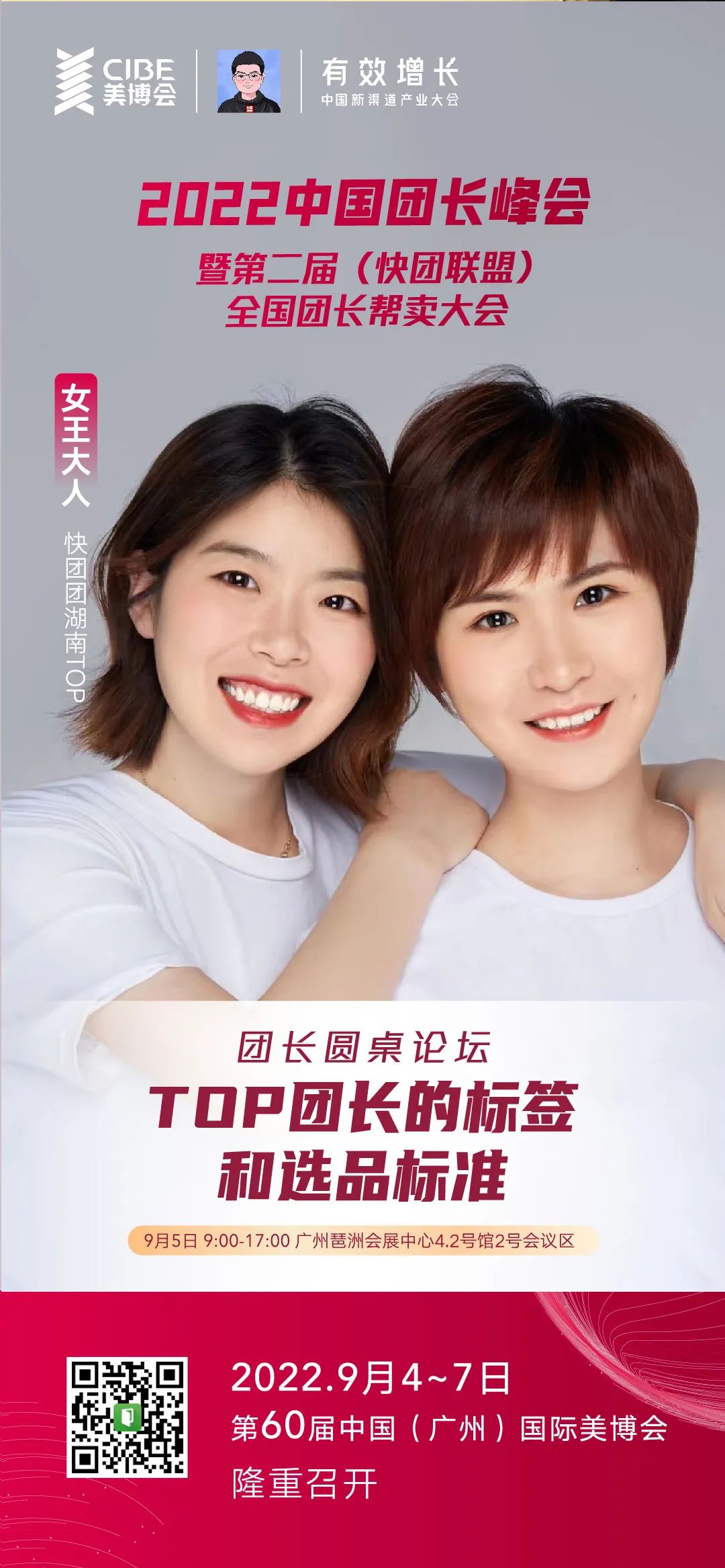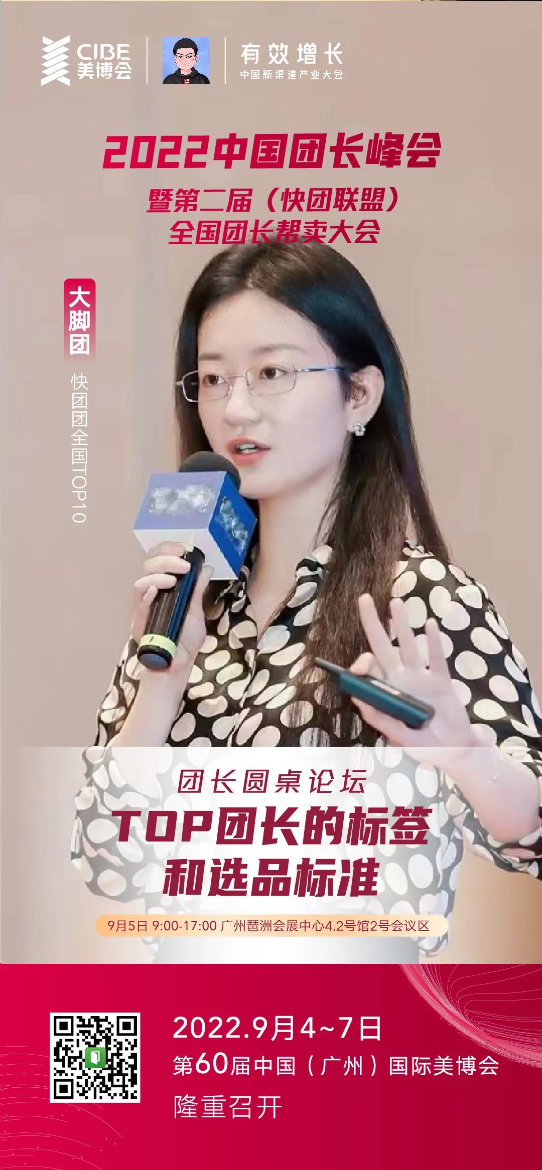本次美博会,亮点就是我们的2022 中国团长峰会暨第二届(快团联盟)全国团长帮卖大会 。 我们会邀请全国的社群团长来参加,一起来选品对接。