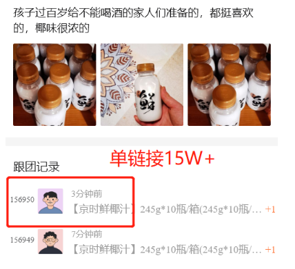 **椰汁,快团团上累计销量4000万瓶,团长单链接销量15W+