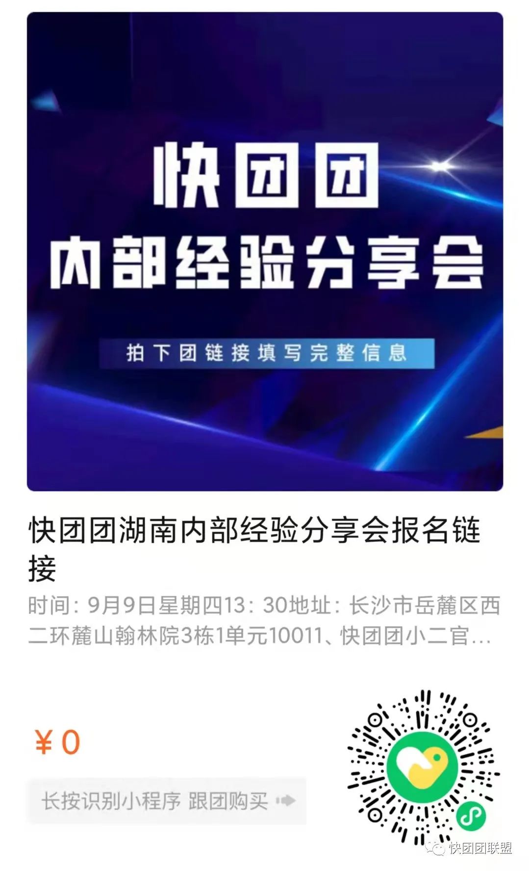 这个活动是快团团官方举办的,没有任何费用,会有很多资源,所以建议大家在长沙附近的可以报名参加。还有,本次活动比较合适有私域团队资源的,正好想转型快团团的团长,现场会分享这方面的经验和资源。