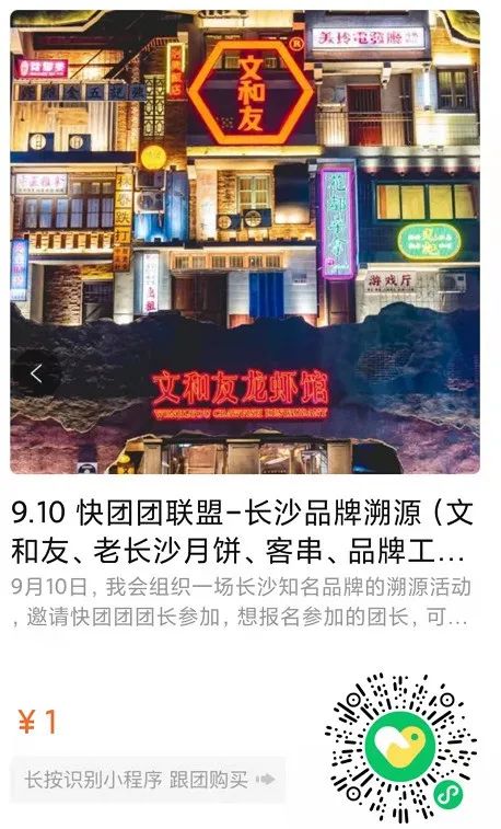 9月10日,我会组织一场长沙知名品牌的溯源活动,邀请快团团团长参加,想报名参加的团长,可以联系我(微信:zhangjunyi89)