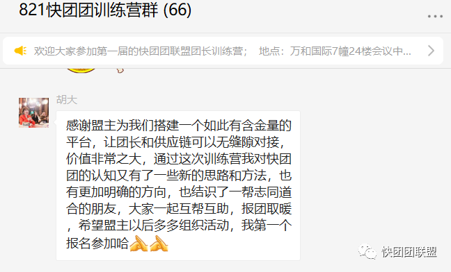2021/08/26 快团团联盟团长训练营01期(杭州站)顺利结束,反馈收获很大,已经开始爆单!