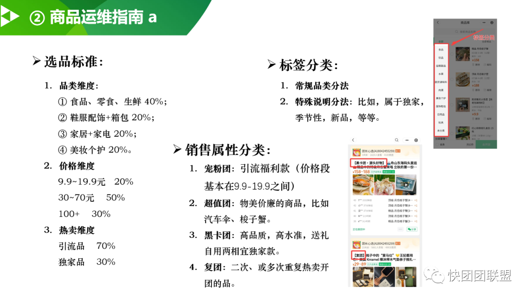 比如,关于商品运维版块,团长心选会根据不同类型做好划分,不同类型的团保持一定的比例,给到不同类型的用户,做的非常细致!\