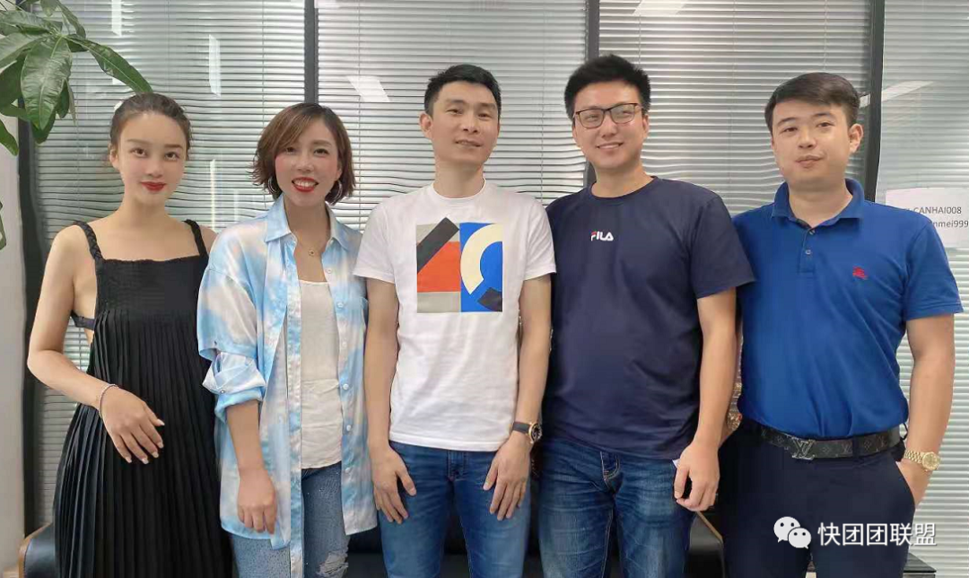张盟主和胡大(左二)品牌工坊金总(右一)拜访快团团头部团长海涛优选\
