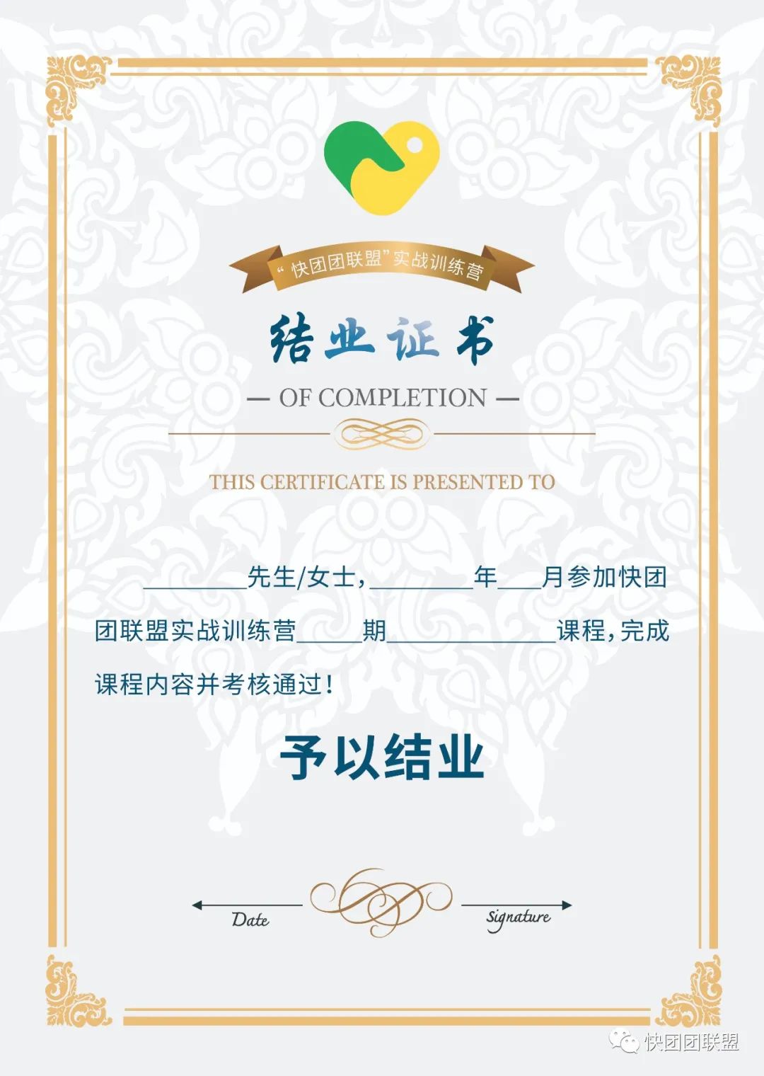 快团团联盟实战训练营-结业证书:
