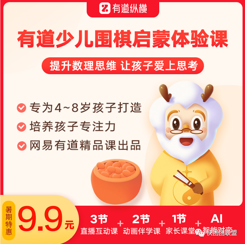 暑期好课-网易少儿围棋(送精美围棋礼盒)仅需29.9元!6节直播课!额外赠送价值300元AI对弈平台!🦙真羊毛!薅起来!