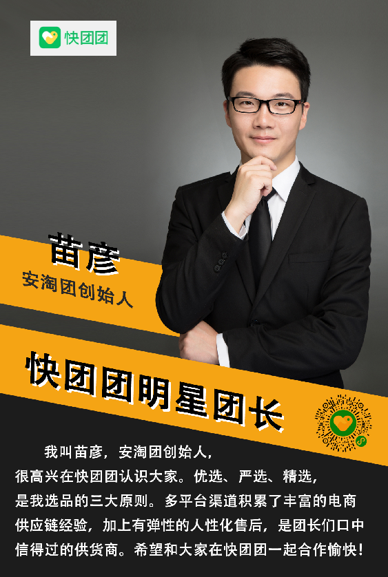 大家好,我是今天的明星团长【安淘团创始人苗彦】,很高兴在快团团认识大家。首先自我介绍一下:坐标上海,德国留学,上海交通大学MBA,十五年国际供应链管理工作经验。