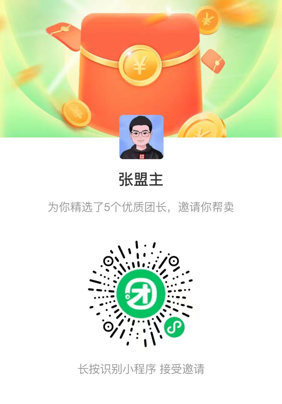 群团团开团,上方扫码,输入邀请码(5个汉字):群团张盟主