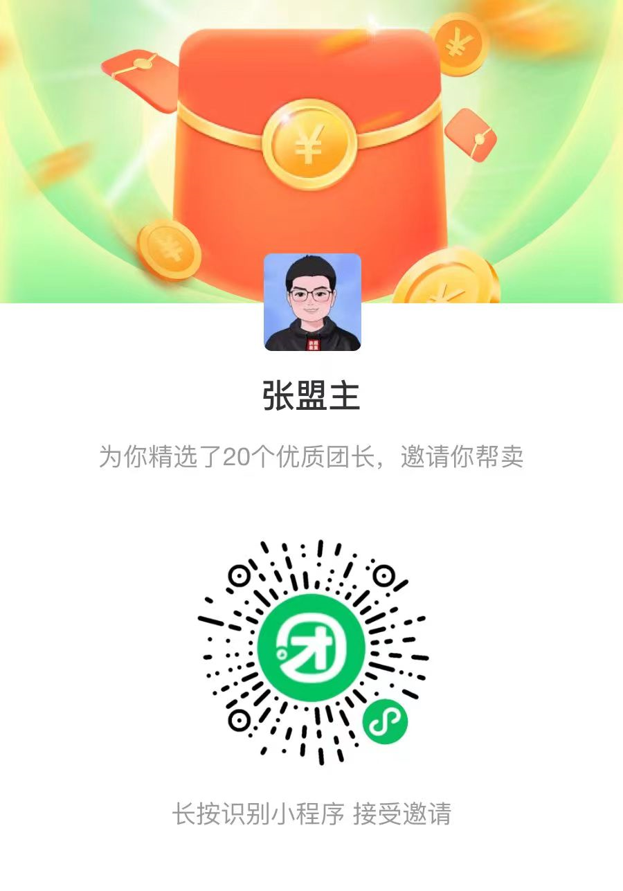 我是张盟主,快团联盟创始人,全国团长帮卖大会发起人,全网垂直快团粉丝30W+,全网推荐快团帮卖120W+人次。我从2021年起,专注研究 快团模式 (快速开团的新团购模式),目前这个模式的工具主要有"群接龙""快团团""团咚咚""鹅享团""群团团""东咚团""团团团"。