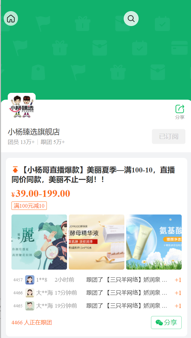 小杨哥这种头部IP也开始进入团购小程序,做自己的团长账号,这个也算是行业里面第一个。后续不知道是否会有更多的大主播做自己的团长账号,也值得期待。