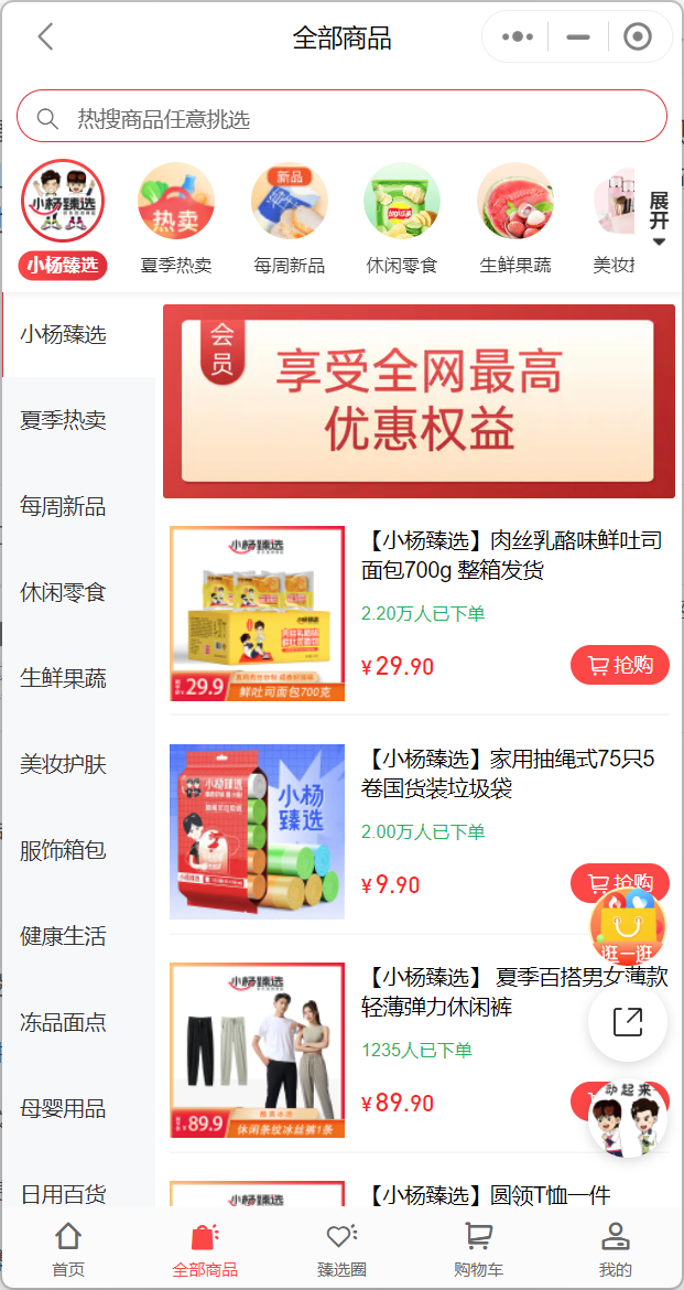 从小杨臻选的有赞微商城里面可以看到,产品非常丰富,几乎是全品类,并且都是直播间带过的产品。从选品角度来说,都是验证过的产品,性价比都是非常高的。