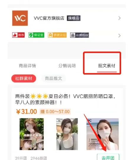 里面部分产品,有「群团团素材」标签的品,点击开团,可以直接一键开团。