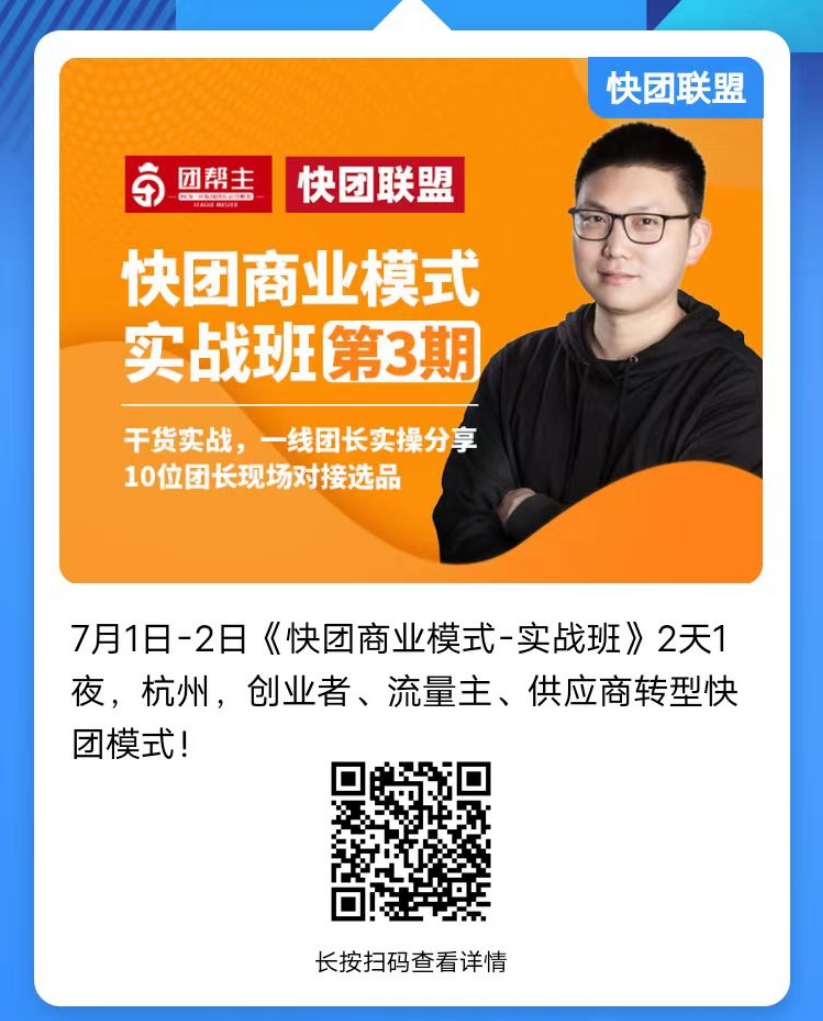 关注抖音【快团张盟主】,每天晚上有直播;公众号【快团联盟】,更多干货,实时更新!