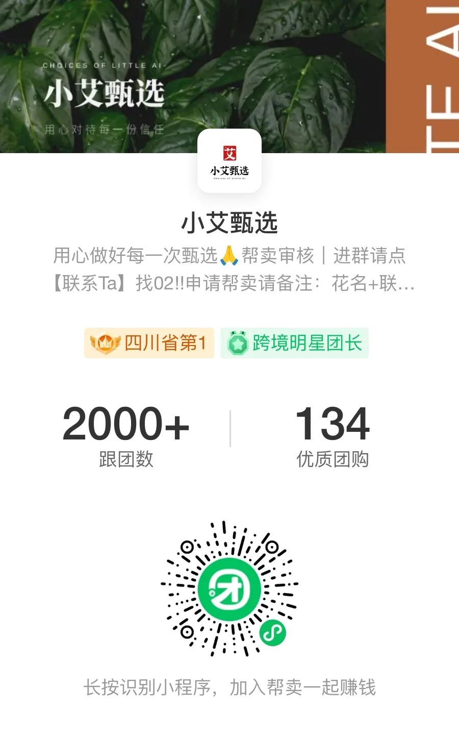 发几个我目前知道的几个群团团团长,大家感兴趣的,可以去尝试帮卖,体验一下!