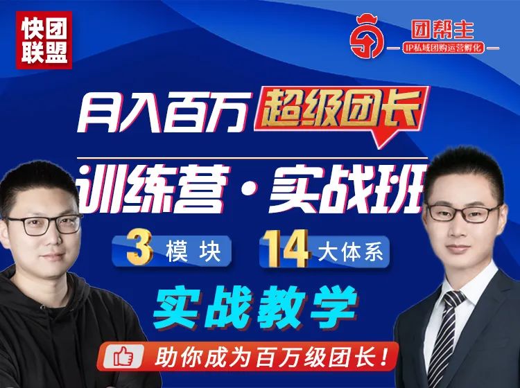 关注抖音【快团张盟主】,每天晚上有直播;公众号【快团联盟】,更多干货,实时更新!