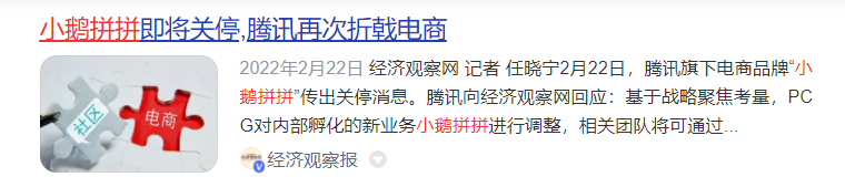 从最早期的拍拍网,到后来的易迅网,直到发现自己不行,投资了京东和拼多多,这才在电商领域,有了自己的队伍。但是腾讯自己还是不死心,后来又搞了很多电商项目,还是一样,上线一两年,然后就默默关闭。之前有模仿拼团模式的小鹅拼拼,22年关闭了。