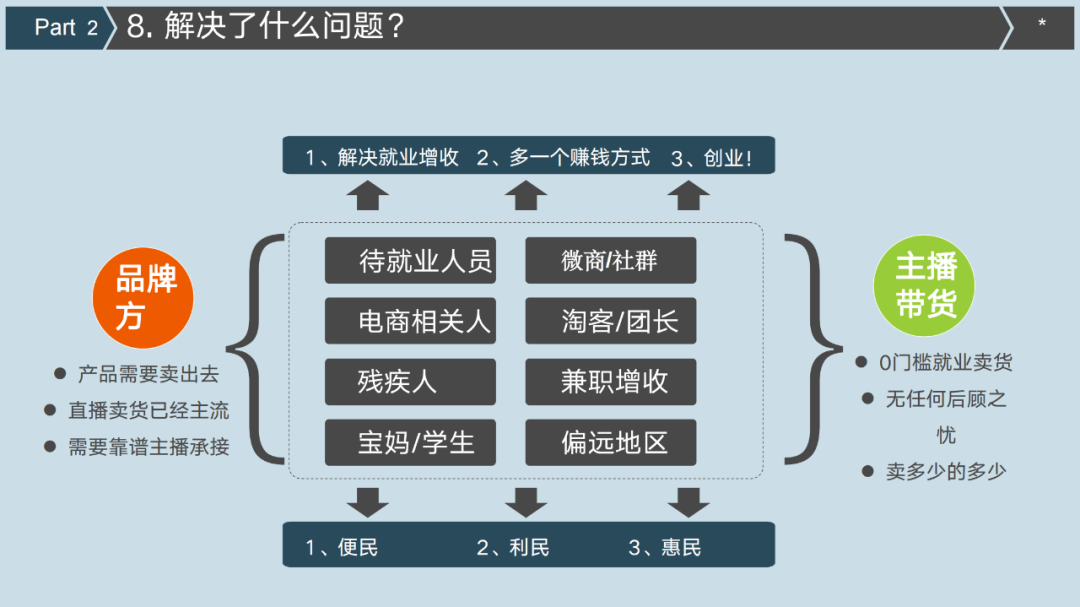 4)一个人就可以搞定直播带货,轻资产,无成本,并且可以兼职做,即使上班族也可以,每天直播2-4小时即可。