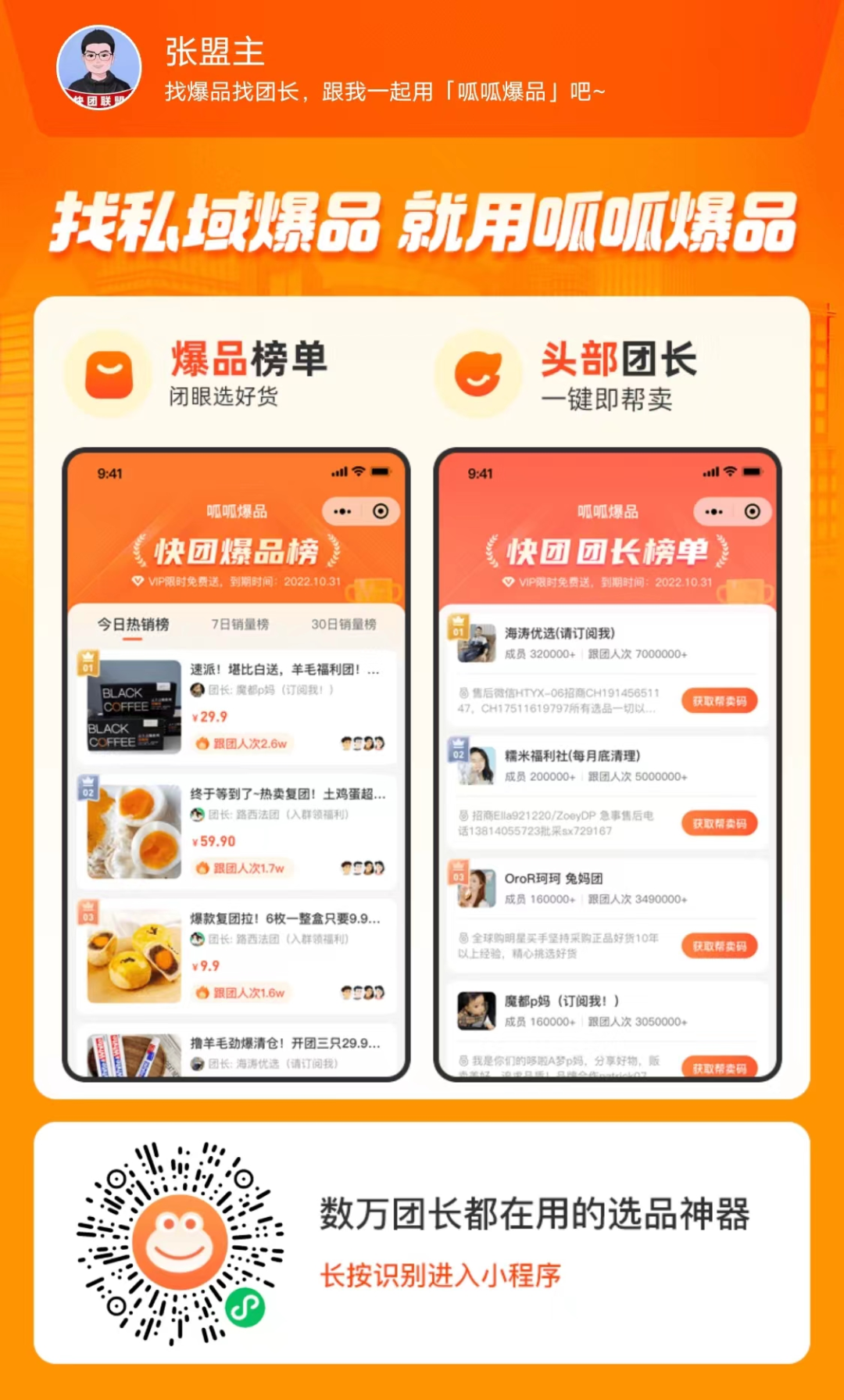 关注抖音【快团张盟主】,每天晚上有直播;公众号【快团联盟】,更多干货,实时更新!