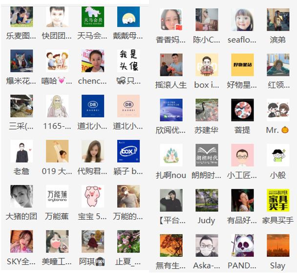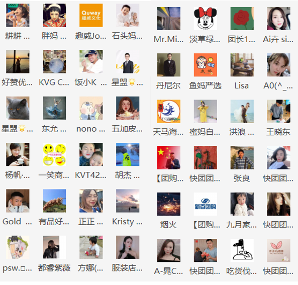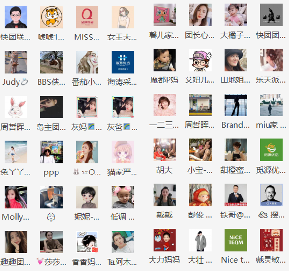 群接龙: 77团(全国TOP)、露西Grocery(全国TOP)、LOVE MOMMY(全国TOP)、皇太后宁爷、早餐女王小院(厦门2)、灵小片、熊熊帮买-AMANDA......