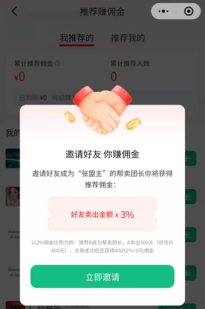 新增了推荐赚佣金, 有了这个功能之后,会更加方便大家推荐团长,吸引一些新帮卖进来。
