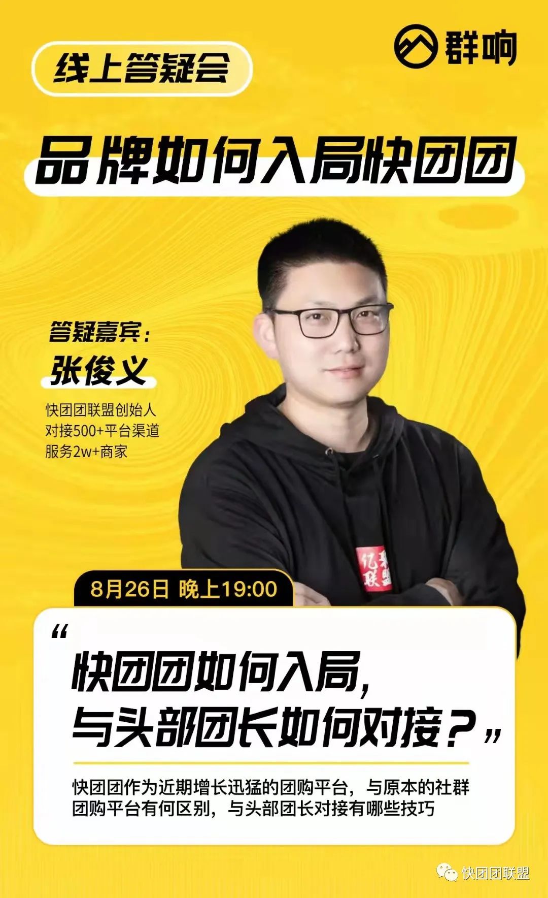 非常感谢群响的邀请,很荣幸参加快团团主题的线上答疑会。以下是我答疑会上的文字内容整理,分享给大家!