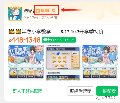快团团模式本身,最核心的玩法就是帮卖!