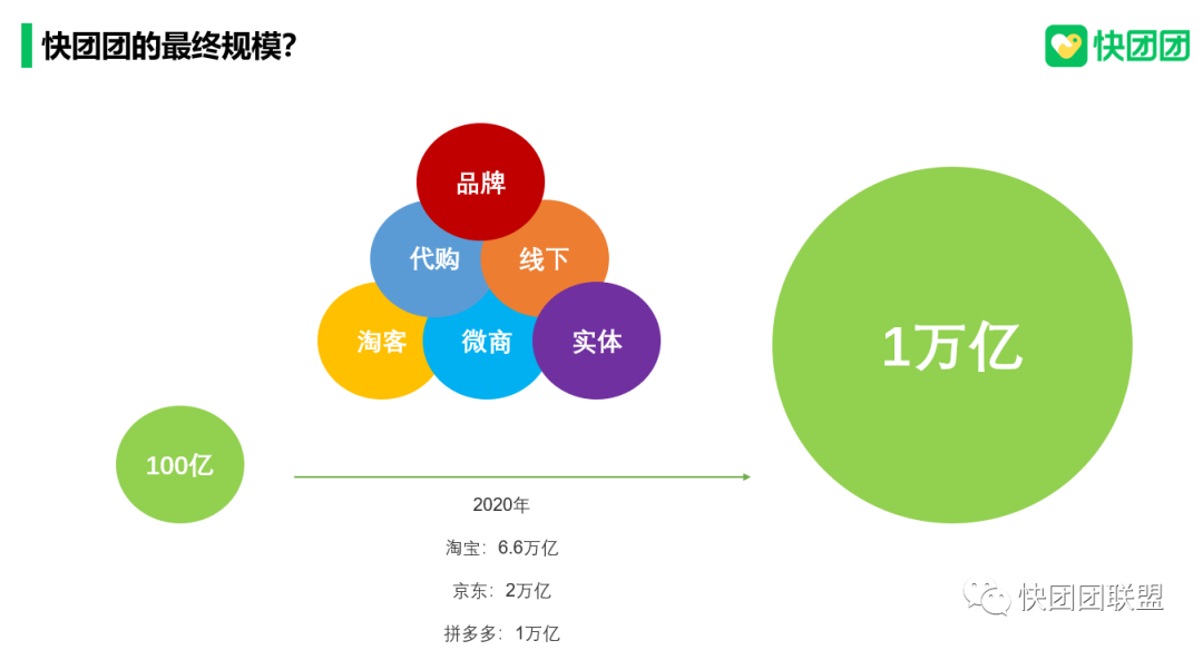 这个是去年的数据,其实就是快团团起步的时候的半年的数据,半年100亿,5000万用户,100万团长,是不是很吓人?